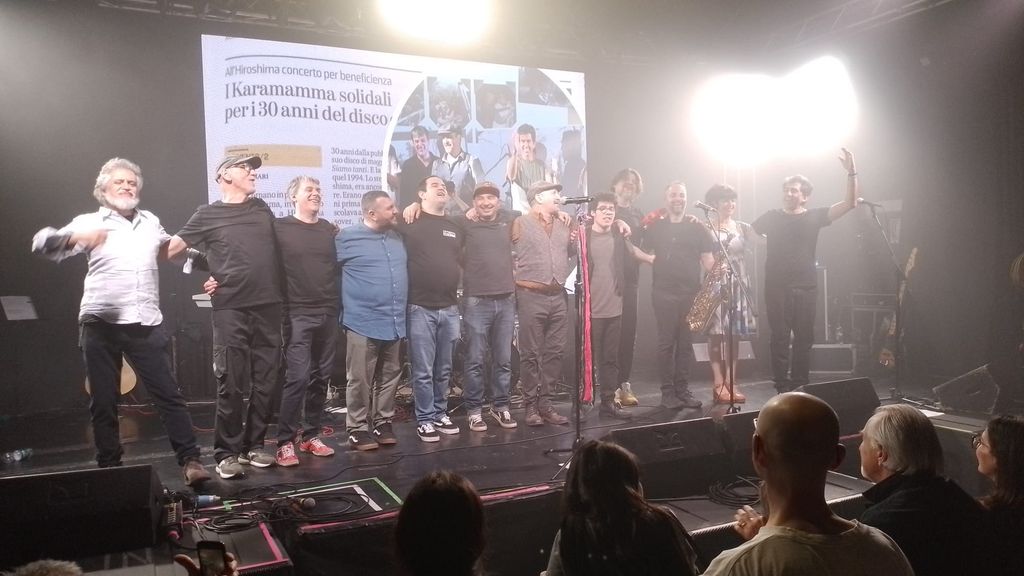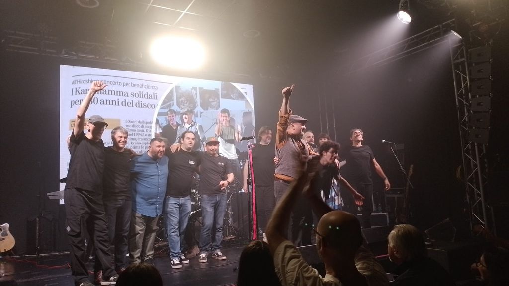 E visto che festa doveva essere, oltre al compleanno dello stesso Caire (che ne ha "cantati" 50, ma sono qualcuno in più), sul palco si sono celebrati anche altri momenti da ricordare: a cominciare dalla presenza di tanti amici e colleghi dei Karamamma. Dai Rimozione, fondati proprio nel 1994 e ritenuti gli eredi dei Karamamma, a Roberta Magnetti, per tutti "Robertina", voce clamorosa e caposaldo della scena musicale torinese. E ancora Marco Goria con la sua armonica a bocca e - nel tripudio - anche Pietro Jacomuzzi, che del cantante dei Karamamma, Alberto, è il figlio e che si è esibito alla chitarra acustica.