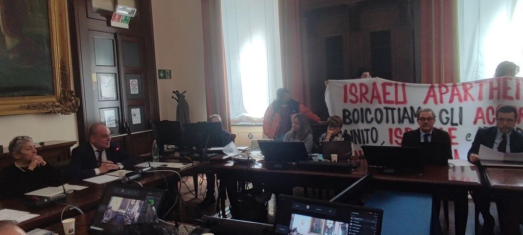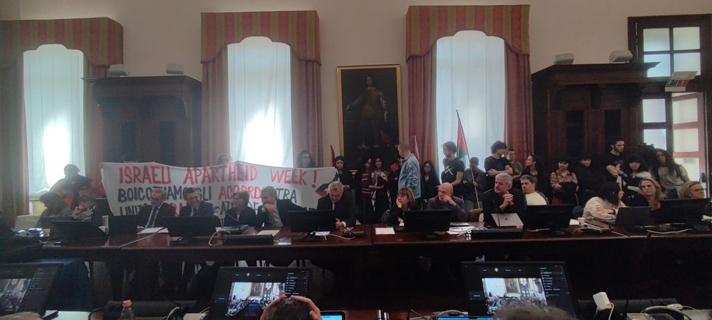 Circa 20 universitari legati a 'Cambiare Rotta' e 'Progetto Palestina' hanno interrotto l'assemblea dei docenti e chiesto di boicottare i progetti con le Università israeliane