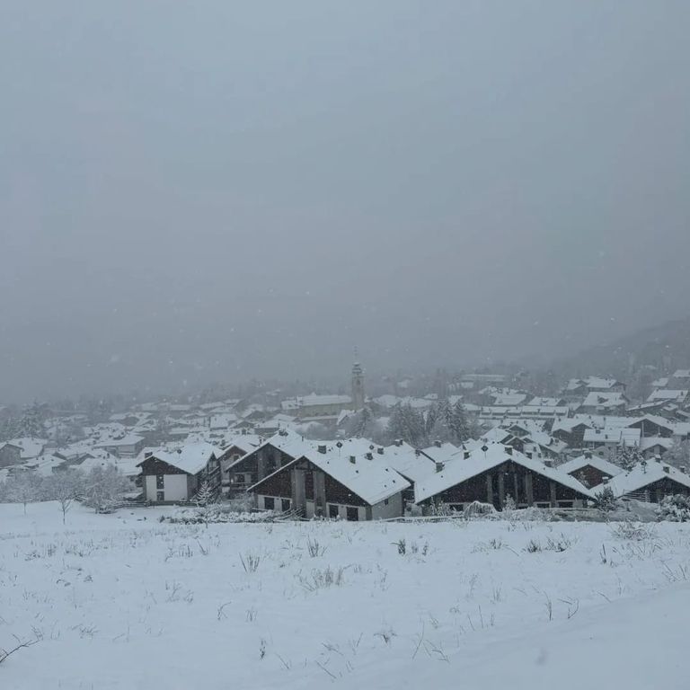 Case e strade innevate in Val Susa e Val Chisone. Previsti 40 cm di neve per domenica a Sestriere