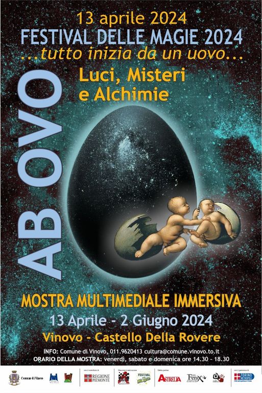 Ma non è tutto. In una sala del Castello di Vinovo è dipinta una fenice che rinasce dalle fiamme ed esce dal suo uovo. Insomma “tutto nasce da un uovo” come recita il sottotitolo dato all’edizione 2024 del Festival delle Magie. La manifestazione ha il suo baricentro nel Castello Della Rovere e si estende fuori delle mura, sulla Piazza Rey e in una parte di Via S. Bartolomeo. In quest’ampio spazio si svolgeranno a ciclo continuo videoproiezioni, videomapping e spettacoli di teatro di strada con illusionisti, ipnotisti e giocolieri.
