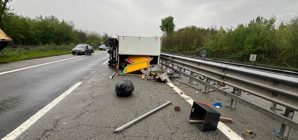 Incidente sull'autostrada Torino-Aosta: autocarro si ribalta con il suo rimorchio