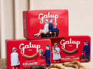 I biscotti KRUMIRI, per la produzione dei quali Galup si ispira alla tradizionale ricetta dolciaria piemontese, offrono un’ampia scelta sia di gusti con i KRUMIRI Classici, al Caffè e ricoperti al Cioccolato, sia in termini di pack. La linea è infatti disponibile in un’elegante scatola in latta rossa litografata con elementi in rilievo per un regalo di pregio oppure confezionata in comodi flowpack da 250 gr.