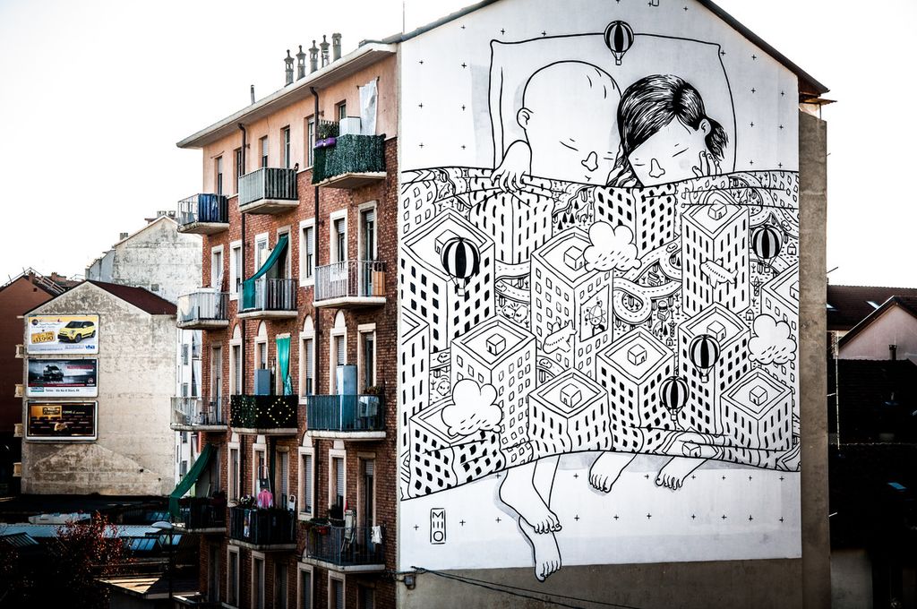 A distanza di 10 anni, Millo torna a Torino per ripristinare il murale in Piazza Bottesini 6. Dal 24 al 30 aprile sarà possibile osservare il “pittore volante” all’opera, su l'imponente facciata di 500 metri quadrati del civico 6 in piazza Bottesini, dove, con pennello alla mano, darà vita ad una nuova scena di vita urbana, in cui chi osserva entra nell’opera e ne diventa parte.