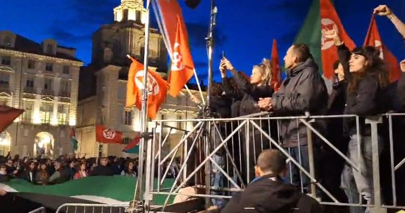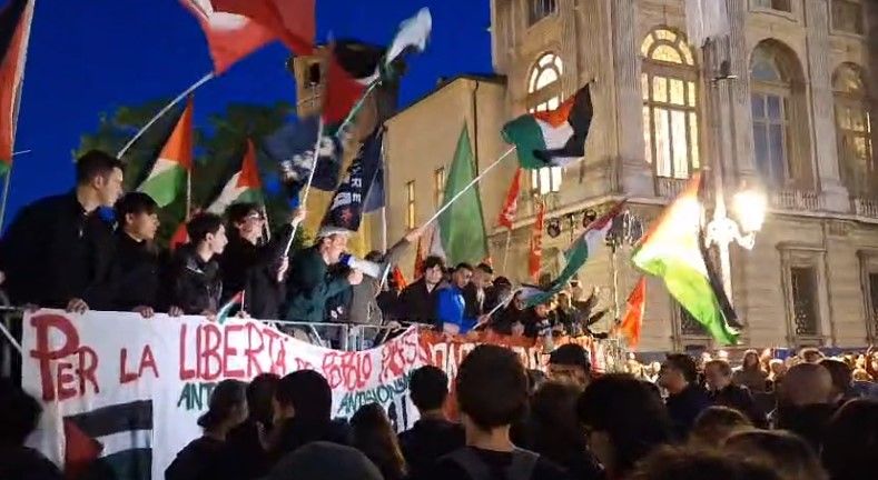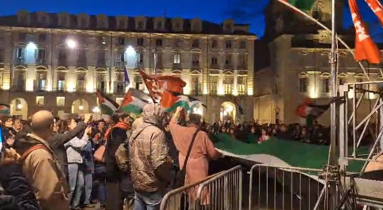 La tradizionale fiaccolata è partita da piazza Arbarello, il percorso seguirà via Pietro Micca, via Cernaia per poi concludersi in piazza Castello. Tensioni anche sotto il palco in piazza Castello