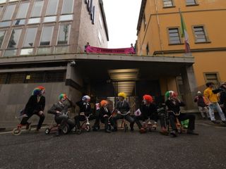 Il "circo" del G7: gli attivisti per il clima si vestono da pagliacci e occupano la tettoia della Rai