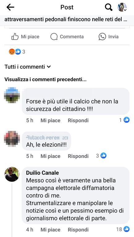 Canale contesta l’articolo sugli attraversamenti pedonali, stigmatizzando il modo con cui viene data la notizia di una promessa più volte rinviata, con tanto di soldi accantonati, e mai realizzata, in questo mandato. Il nostro dovere non è dare un giudizio politico amministrativo, sulla scelta: il nostro dovere è raccontare i fatti e le scelte, quindi le cose che vengono realizzate e quelle che non vengono realizzate, soprattutto quando diversi lettori chi chiedono aggiornamenti.