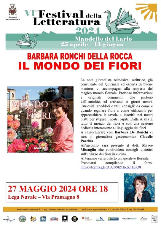 Barbara Ronchi della Rocca sarà la protagonista di un interessante incontro dedicato al magico mondo floreale, presentato da Claudio Porchia, noto giornalista gastronomico. L’appuntamento promette di essere ricco di preziose informazioni, originali commenti e utili consigli che spazieranno dall’antichità ai giorni nostri.