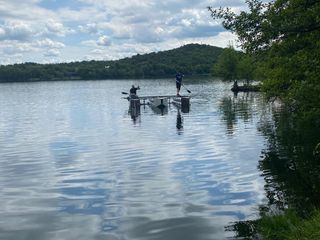 La zattera è frutto dell’ingegno e dell’impegno di Carlo e Gabriele, che hanno trasformato fusti di birra e altri materiali riciclati in una struttura che si distingue per la sua sostenibilità ambientale. Il lavoro artigianale di Carlo e le sue abilità nella saldatura e nell'assemblaggio hanno dato forma a una zattera robusta e funzionale. Gabriele, focalizzandosi su design e concetto, ha guidato il processo creativo, garantendo che la zattera non solo rispondesse ai requisiti funzionali, ma incarnasse anche un'espressione tangibile di sostenibilità. L'uso di materiali di recupero non solo riduce l'impatto ambientale, ma testimonia anche la possibilità di creare soluzioni innovative partendo da risorse già esistenti. Un mezzo che diventa un vero e proprio simbolo di impegno per un mondo più sostenibile.