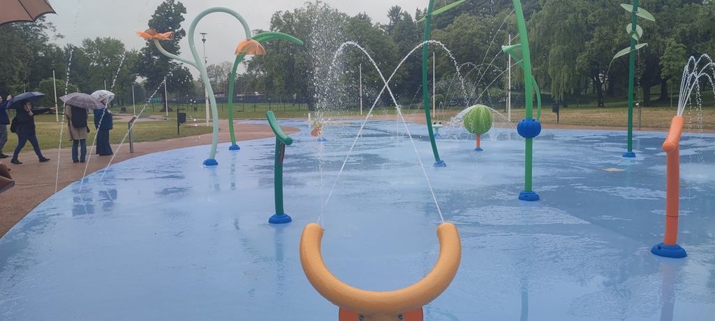 Appena smetterà di piovere, di fronte alla piscina della Pellerina i bambini potranno divertirsi coi nuovissimi giochi di acqua. Cannoni, foglie e fiori per un totale di 41 attrezzature che spruzzano acqua e renderanno più fresca la calda estate torinese.
