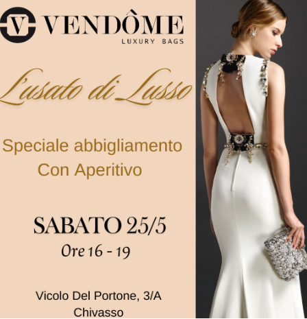 Vi aspettiamo in Vicolo del Portone 3/a a Chivasso, dalle 16 alle 19 presso il negozio Vendôme Chivasso Luxury Bags per lo speciale abbigliamento “L’usato di lusso” con aperitivo.