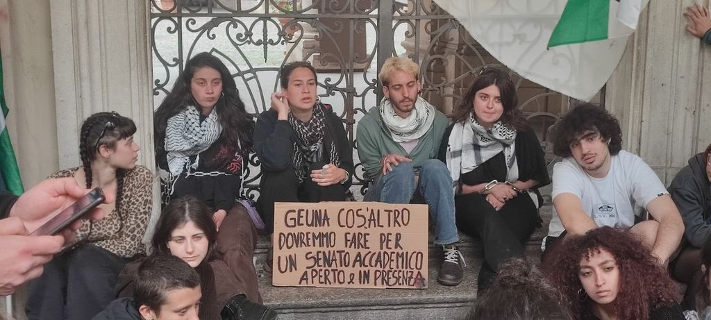Gli studenti di Intifada Studentesca, che stanno occupando Palazzo Nuovo, si sono collegati col Senato Accademico online ma il loro audio è stato silenziato