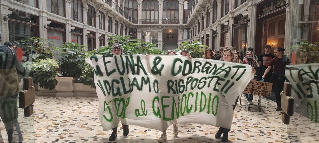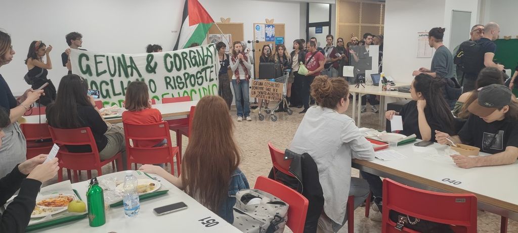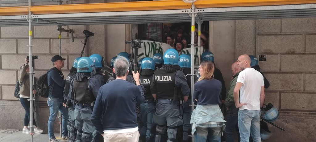 Per questo qualche decina di occupanti munita di striscioni, bandiere e altoparlanti ha provato a raggiungere Palazzo Carignano dove, dalle 14, si stava svolgendo un incontro sull'intelligenza artificiale con ospiti i due rettori. Dopo aver lasciato Palazzo Nuovo, i manifestanti si sono fermati alla mensa Principe Amedeo per volantinare e coinvolgere gli studenti in pausa pranzo. Bloccati anche i tentativi di accedere alla piazza dalla Galleria Subalpina e dal dipartimento di Matematica.