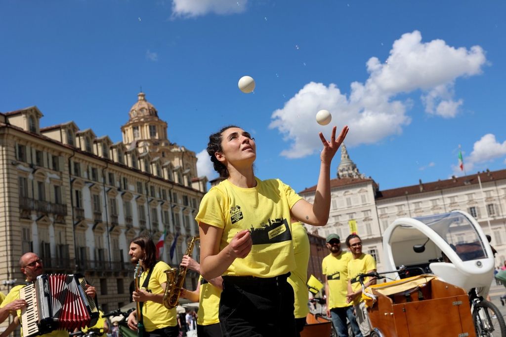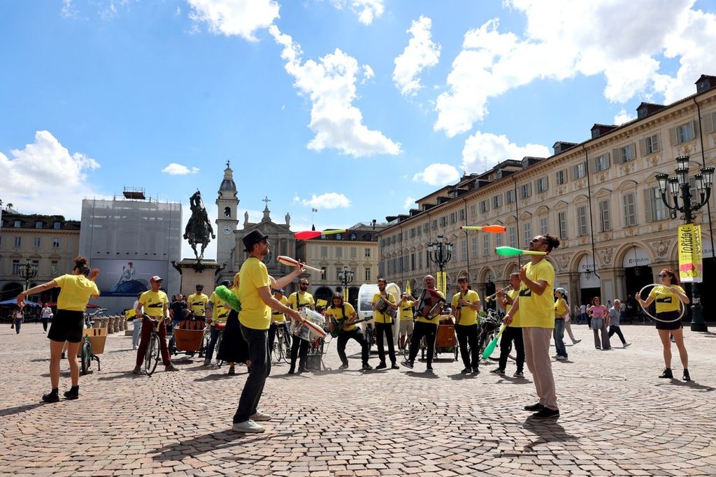 La festa continuerà nel pomeriggio. Alle ore 15 da Palazzo Civico partirà la parata con musicisti e giocolieri su due ruote che, attraversando le vie e le piazze del centro, coinvolgerà torinesi e turisti con esibizioni musicali e spettacoli di strada a tema ciclismo. Questo il percorso: via Palazzo di Città, piazza Castello, via Roma, via Maria Vittoria, via Bonafous, piazza Vittorio Veneto, lungo Po Armando Diaz, corso Cairoli e arrivo al Parco del Valentino.
