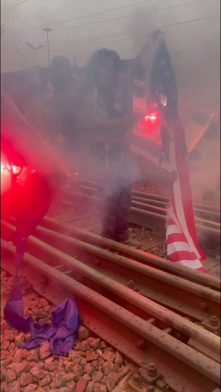 I Pro Palestina bloccano Porta Nuova: falò davanti alla stazione, bruciata la bandiera israeliana [FOTO]