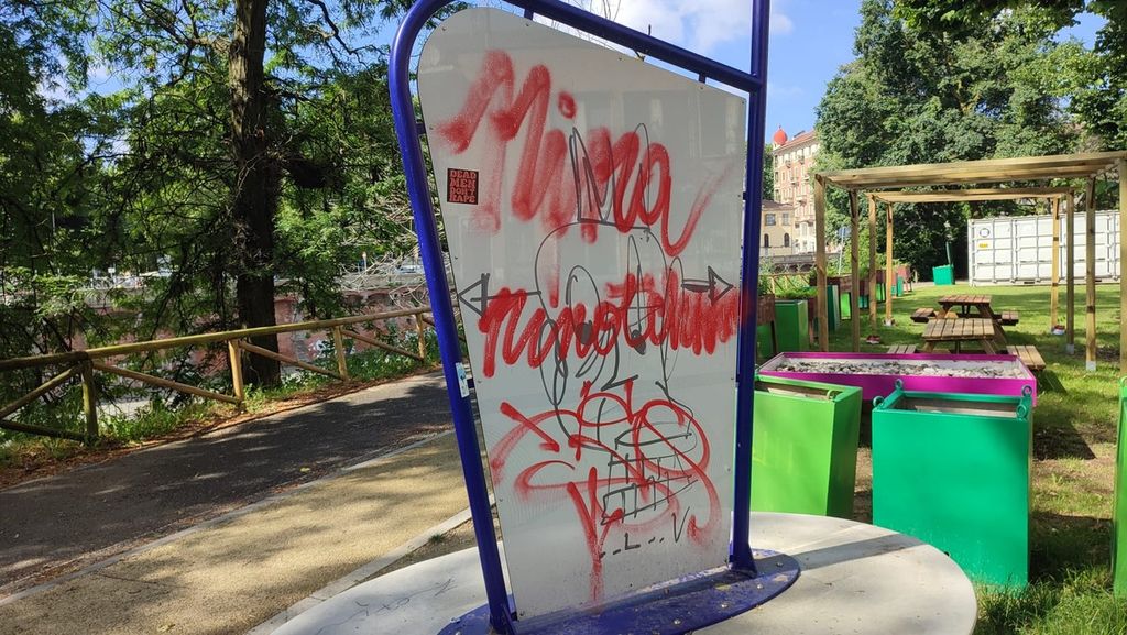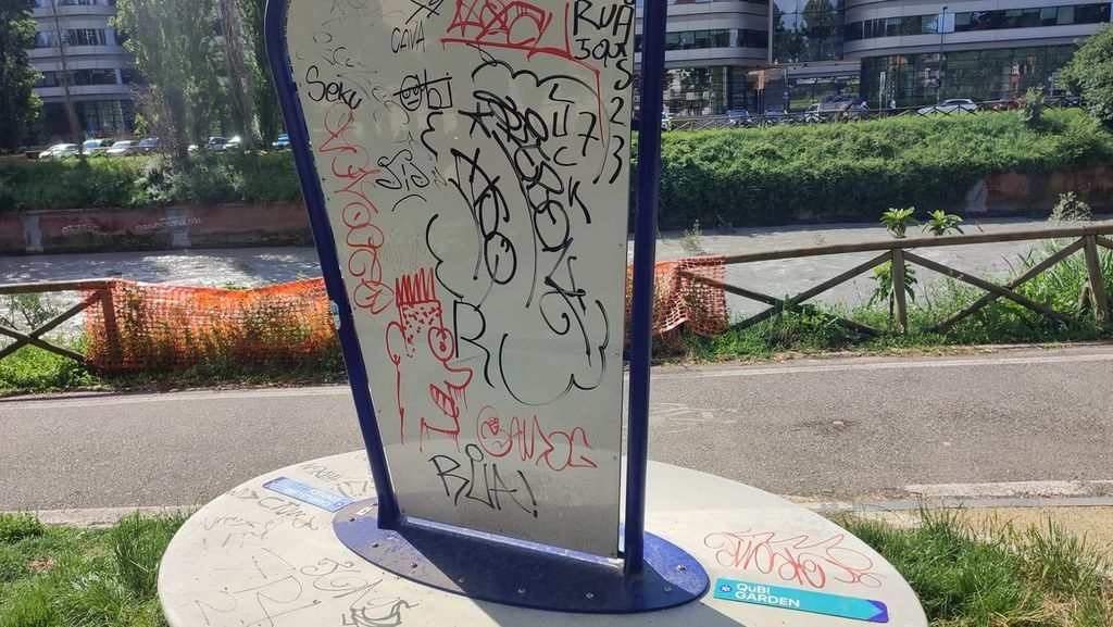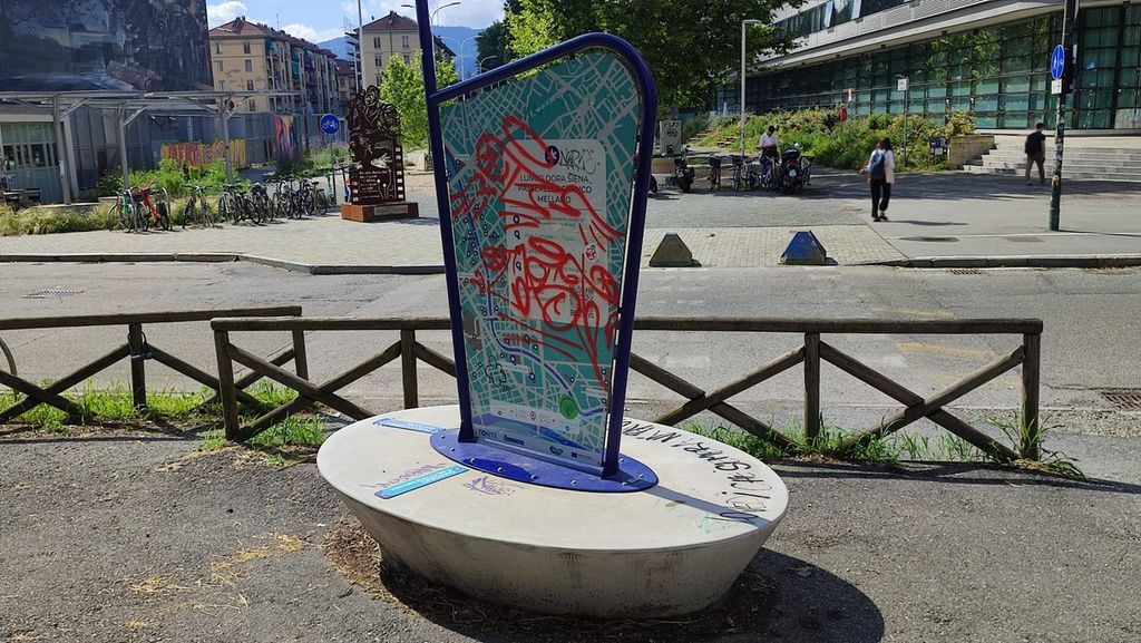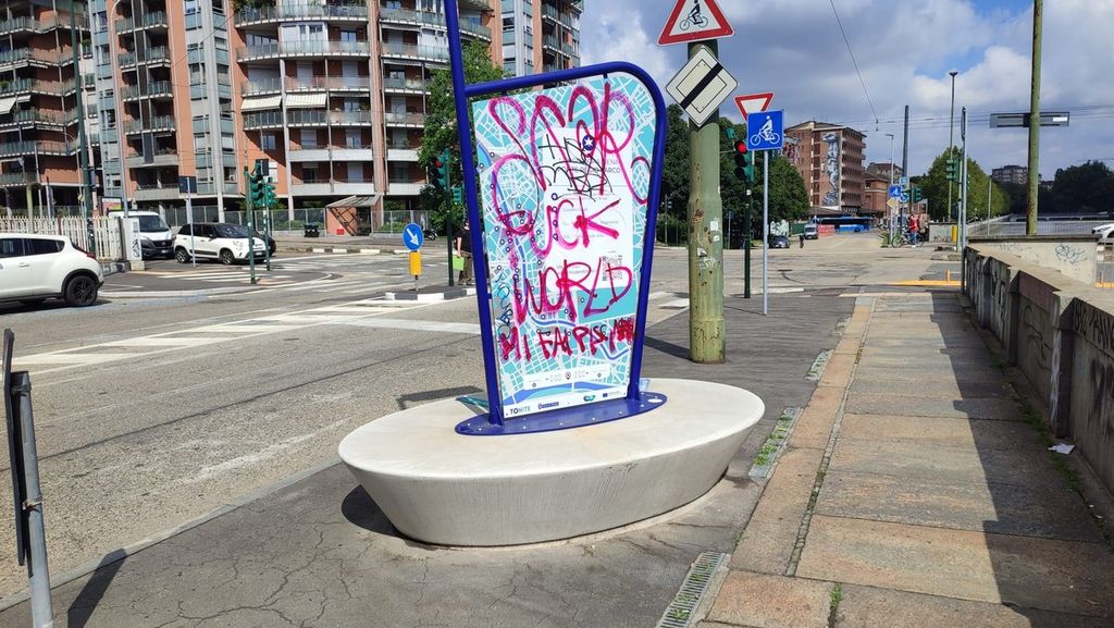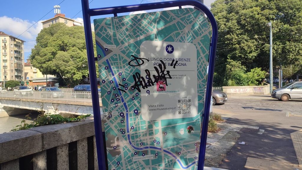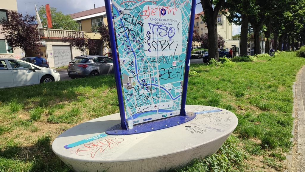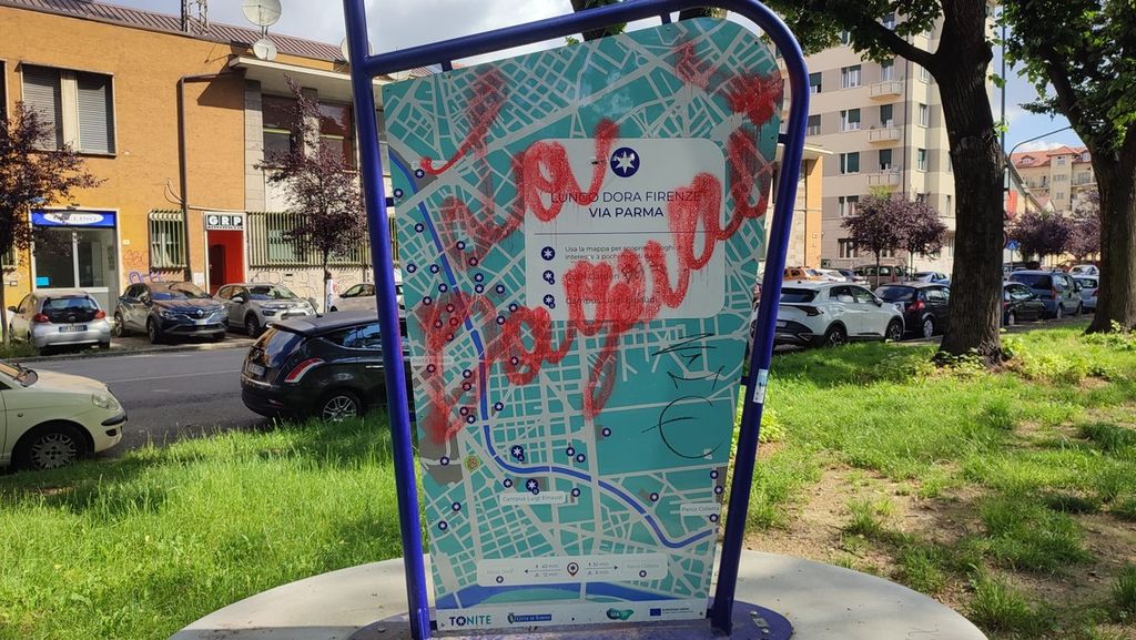 Imbrattate e inutilizzate, il triste naufragio delle panchine “a barchetta” lungo la Dora