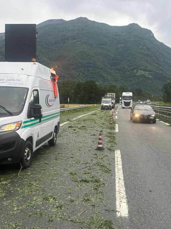 A causa di una forte grandinata, sull’autostrada A5, tra Ivrea e Quincinetto, sono caduti alcuni rami di alberi adiacenti alla carreggiata che hanno invaso le corsie in più punti, dove si transita parzialmente sulla seconda corsia di marcia.