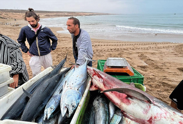 Procediamo verso sud in direzione della costa utilizzando sia l’autostrada che le strade secondarie, per evitare le multe della polizia. In Marocco i controlli sulla velocità sono effettuati a distanza con il Telemetro e le forze dell’ordine sono molto fiscali, le tolleranze quasi non esistono. In ogni caso veniamo multati per un piccolo eccesso, pazienza. Dopo 400 km arriviamo a Tifnit, un villaggio di pescatori raggiungibile attraversando territori desertici e tanto sterrato, qui non ci sono ne ristoranti ne resort. Un Riad è pronto ad accogliere il gruppo. Si tratta di una struttura ricettiva tipica marocchina caratterizzate dalla presenza di giardini interni; un luogo in cui la tradizione risuona a ogni passo, dove le fontane e la vegetazione lussureggiante rendono fiabesca la permanenza. Il villaggio è costituito principalmente da piccole abitazioni molto semplici dove la popolazione locale vive in un passato remoto, fatto di pesca e quotidiana sussistenza. Il tramonto in spiaggia è spettacolare con il sole che scende a picco sul mare e la gentilezza della popolazione locale è straordinaria. Una sera ceniamo sulla grande terrazza a base di verdure locali e pesce alla griglia, preparato direttamente da un pescatore; qui il turismo non è ancora arrivato e “i locals” improvvisano in maniera eccezionale . Un luogo assolutamente inaspettato !
