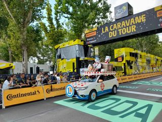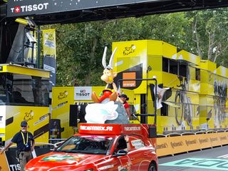 L’iconica statuetta Toh dell’artista Nicola Russo, divenuta un testimonial della Fondazione Piemontese per la Ricerca sul Cancro, è salita sul podio della terza tappa del Tour de France. All’arrivo della corsa, Nicola Russo ne ha consegnato un esemplare completamente vestito di giallo al nuovo primatista della corsa, Richard Carapaz, e al direttore generale della Grande Boucle, Christian Prudhomme.