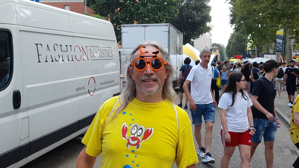 C'è chi, invece, sfoggia i colori dell'Argentina, con tanto di maglia numero 10 di Maradona. Ma ci sono anche coppie che al tempo antepongono la passione per le due ruote: lei, seduta su una sedia da campo con un enorme fiocco giallo a ornarle i capelli. Lui, invece, sfoggia un cappello fatto a mano che riproduce una salita di montagna (a mo' di torta nuziale) e livello dopo livello alliena decine di corridori. Tante lingue, tante nazionalità. Un'unica grande voglia di vedere i campioni sfrecciare sul corso che di solito ospita chi si reca allo stadio a vedere il calcio o i concerti al palazzetto.