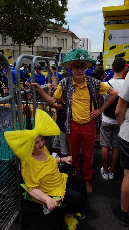 Ma il Tour de France è anche divertimento, gioia e colore. Giallo, senza dubbio. Ma non solo: tante le tinte legate agli sponsor e, senza dubbio, la seconda casacca per diffusione è quella a pois che il Tour assegna al campione delle salite, il re degli scalatori. Ma che oggi sta sulle spalle di tanti appassionati, di ogni età. Tantissimi dei quali sono arrivati in bici, ovviamente.