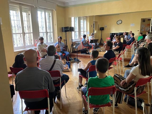 L’incontro ha visto la partecipazione, su prenotazione per numero limitato di posti in modo da garantire uno scambio di opinioni più prossimo, di giovani allievi di chitarra, cantanti e adulti incuriositi da questo percorso unico nel suo genere e, soprattutto, unico al mondo.