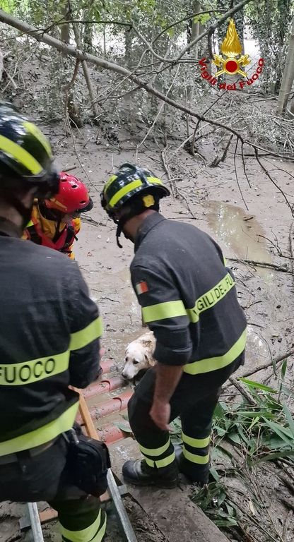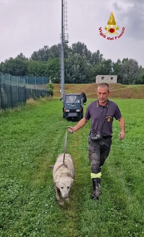 Banchette, i pompieri salvano un cane rimasto intrappolato nel fango della Dora Baltea