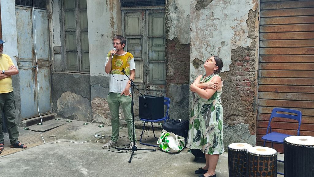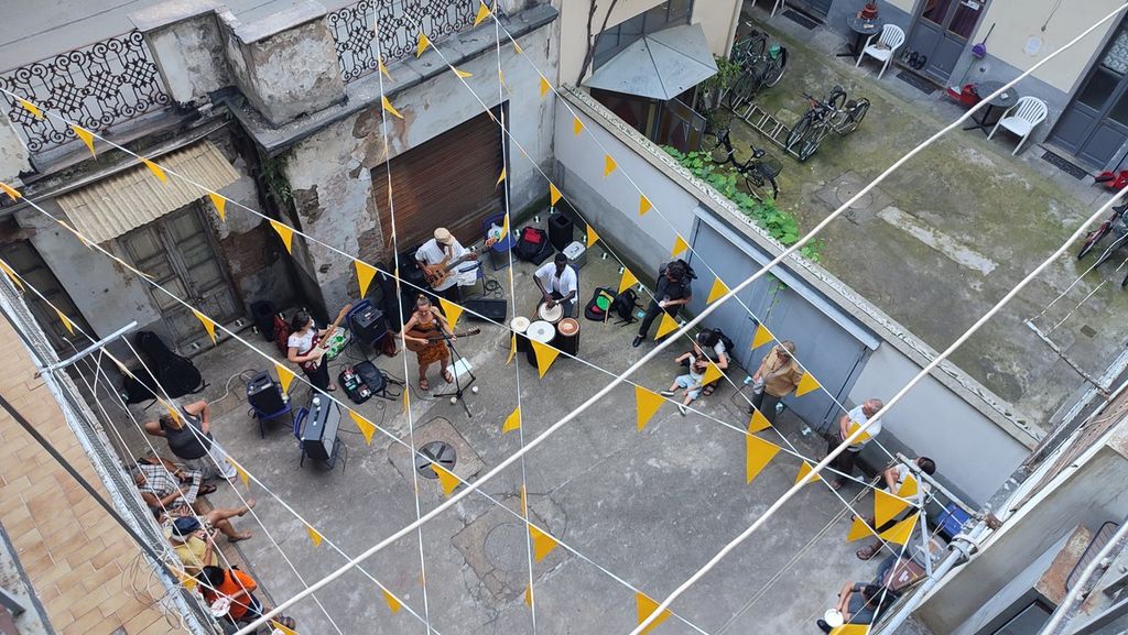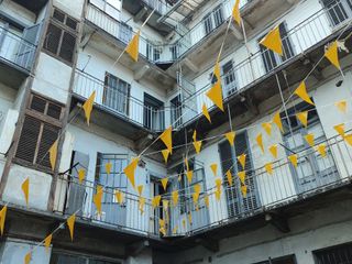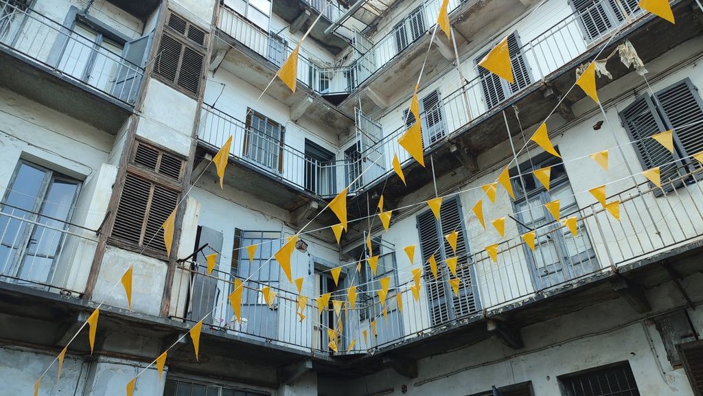 Si fa festa nonostante i muri imbrattati da frasi e manifesti contro il progetto collettivo che ha l'obiettivo di favorire l'accesso alla casa a persone e famiglie in difficoltà