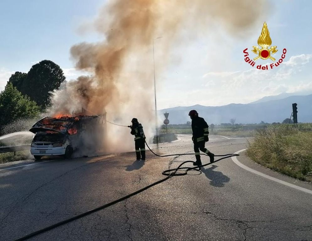 Un camper a preso fuoco sulla statale 23 ad Airasca nel tardo pomeriggio di oggi.