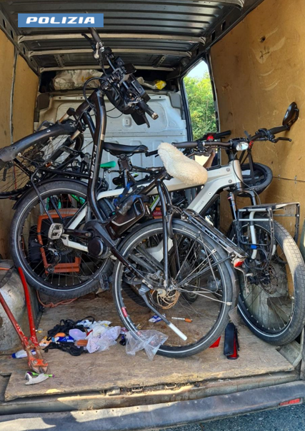 Il veicolo risultava rubato. A bordo c'erano mezzi a pedali, ma anche motofalciatrici e strumenti per forzare e tagliare catene e lucchetti