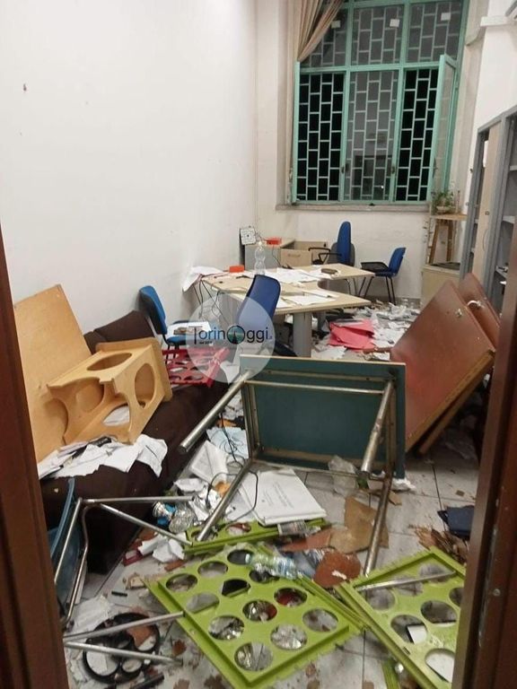 Plexiglass frantumati, uffici assaltati: le immagini di una notte di disordini al minorile di Torino [FOTO]
