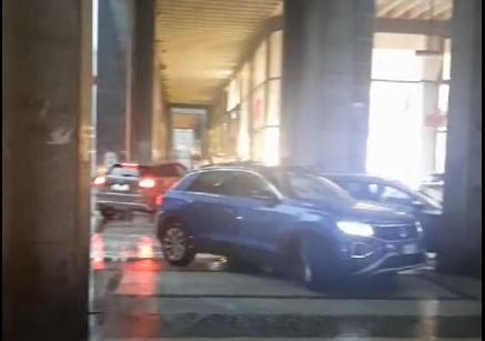Pioggia, grandine, fulmini e tuoni. Il maltempo si riaffaccia sul Piemonte. Le auto cercano riparo sotto i portici [VIDEO]