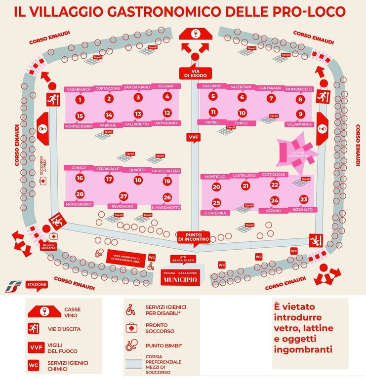 In piazza anche un esperto Onav che potrà suggerire una scelta tra due vini abbinati ad ogni pro loco. La Barbera sarà presente in tutte le 28 casette e ognuna avrà un altro vino da abbinare al piatto.