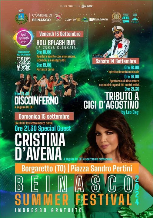 Dopo il grande successo di luglio, con il clou la serata evento con Giusy Ferreri, con il mese di settembre a Beinasco ritorna il “Summer Festival”, questa volta a Borgaretto. Musica, artisti e divertimento per grandi e piccini in piazza Pertini, con i concerti che inizieranno alle ore 21,30 e rigorosamente ad ingresso gratuito!