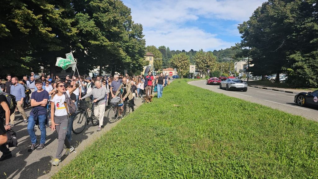 Corteo di protesta per "fermare la devastazione del Meisino", contestato un gruppo di Ferrari [VIDEO e FOTO]