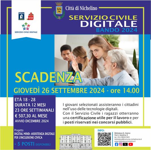 Come mettere assieme giovani e meno giovani. Nichelino ci prova con il nuovo bando del Servizio Civile Digitale 2024.