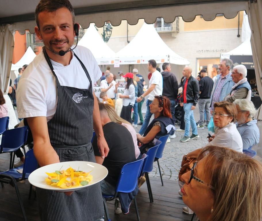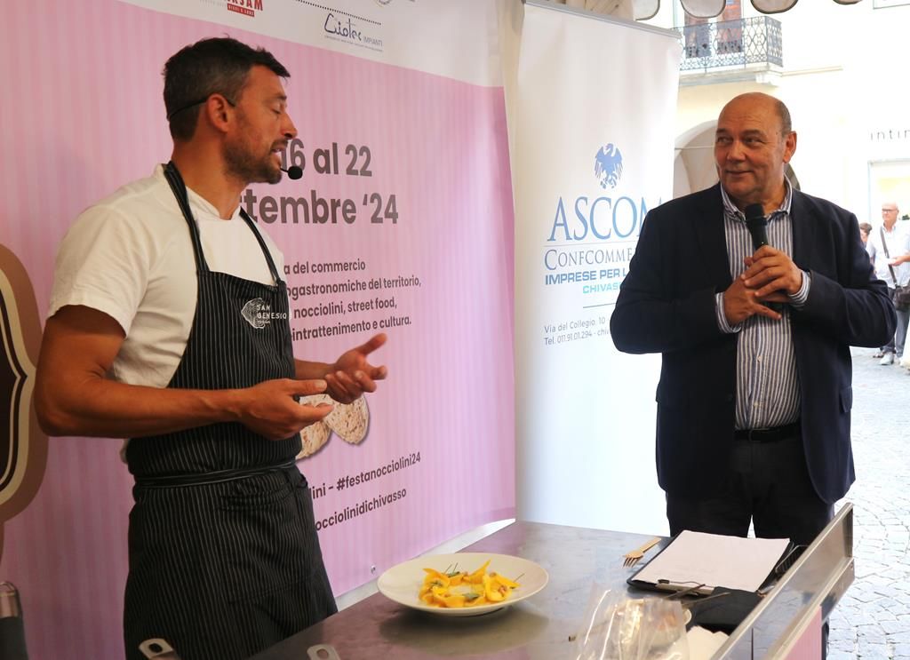 La Festa dei Nocciolini di Chivasso, uno degli appuntamenti gastronomici più attesi della stagione, si è arricchita quest’anno di un evento straordinario: Cuochi A-Tipici condotto da Fabio Bongiorni e Claudio Porchia. Questa iniziativa, dedicata alla celebrazione della cucina d'autore e delle eccellenze locali, ha già riscosso un successo clamoroso. Nell’atmosfera festosa del centro storico di Chivasso, la manifestazione ha saputo fondere la tradizione e l’innovazione culinaria, offrendo ai visitatori un'esperienza gastronomica unica nel suo genere. Tra gli ospiti più acclamati Alessandro Giachino del Ristorante Giachino e Gianni Spegis del Ristorante SanGenesio.