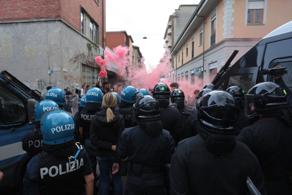 La contestazione è poi seguita anche alla Piazza dei Mestieri, con il lancio di uova da parte dei manifestanti contro le forze dell'ordine e verso il palco. Braccati due studenti che hanno provato a interrompere l'intervento del ministro