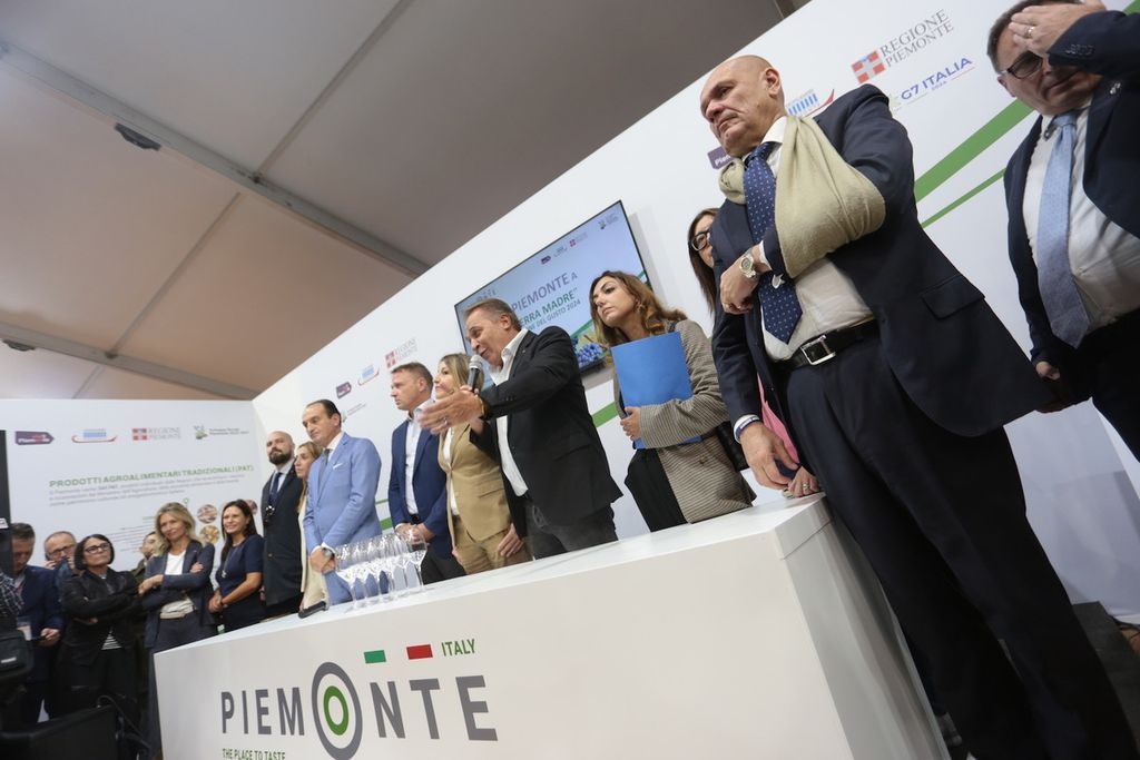 Un tuffo tra la folla, con stop tra i molti stand allestiti per la cinque giorni targata Slow Food: dal caffè Lavazza, ai sigari Toscani, poi una pausa allo stand della Regione Piemonte con un brindisi a suon di Bracchetto, degustazioni di formaggi come il Roccaverano, passando per la Carne cruda Coalvi, alle mele Igp di Cuneo ma anche spazio per un dolce/salato gelato al Gorgonzola.