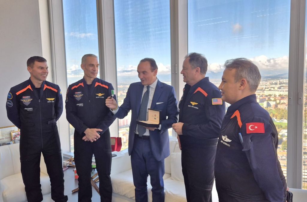 Il Presidente della Regione Piemonte, Alberto Cirio, ha accolto oggi al Grattacielo Piemonte, i componenti dell’equipaggio della Missione spaziale Axiom-3, composto dal Colonnello Walter Villadei dell'Aeronautica Militare Italiana, dal Comandante Michael Lopez-Alegria (USA, Axiom Space), da Alper Gezeravci (Turchia) e Marcus Wandt (Svezia).