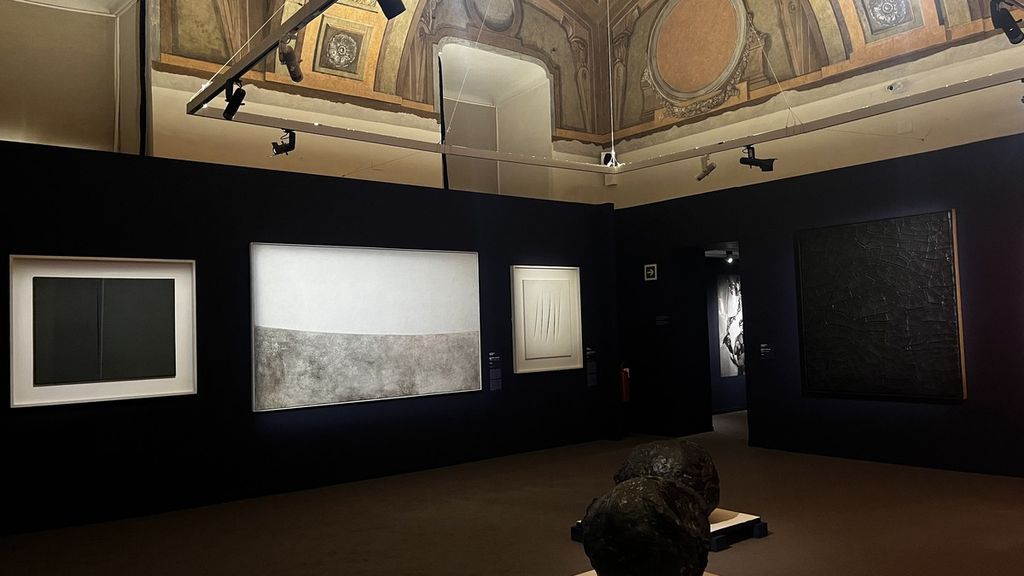 Il fermento artistico e creativo che si sviluppò a Roma tra gli anni ’50 e ‘60 è rappresentato in mostra da un enorme décollage di Mimmo Rotella del 1957 e, via via, dalle opere storiche di Giosetta Fioroni, Carla Accardi, Giulio Turcato, Gastone Novelli, Toti Scialoja, Sergio Lombardo, Tano Festa. Un ulteriore inedito confronto si sviluppa tra un intenso monocromo nero di Franco Angeli e alcuni importanti Achrome di Piero Manzoni. A testimoniare poi l’importanza della Contemporaneità, un’altra sala dedicata all’ormai iconico quadro specchiante I visitatori del 1968 di Michelangelo Pistoletto e un’ulteriore alle celebri “Cancellature” di