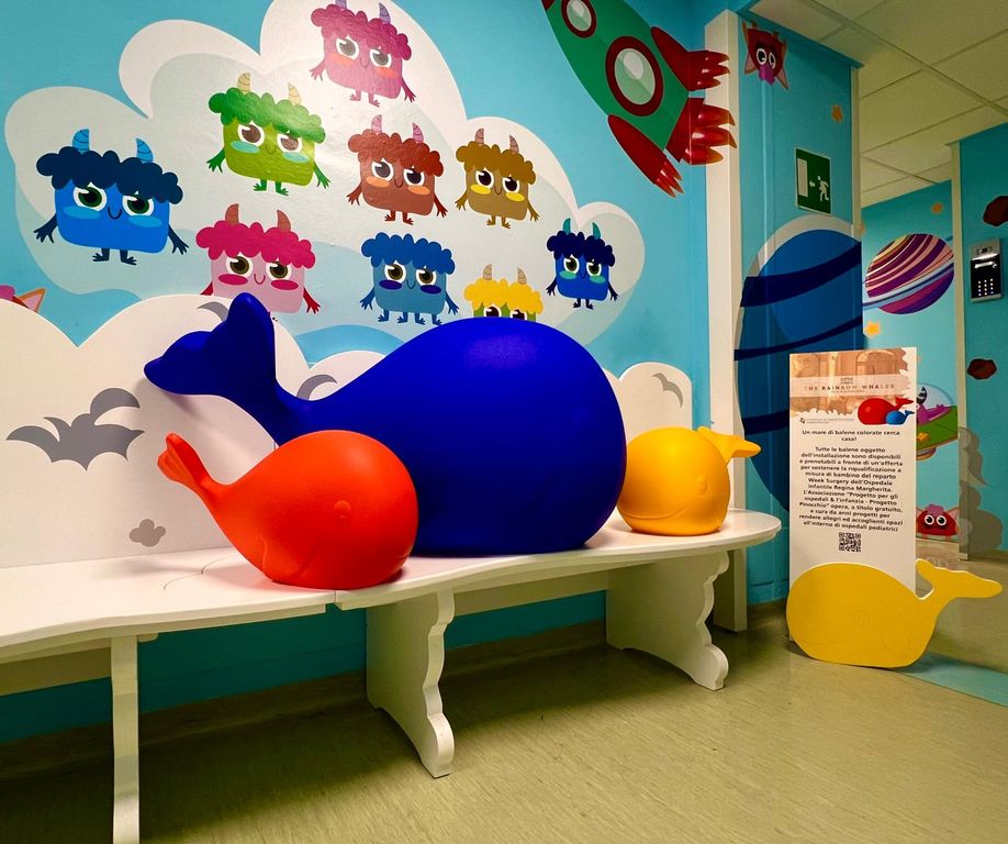 Cento Balene colorate, opere multiple di Carlo Rizzetti, cercano casa. L’obiettivo è sfidante, una raccolta fondi a sostegno della riqualificazione a misura di bambino del reparto di Week surgery al quarto piano dell’ospedale Infantile Regina Margherita di Torino.