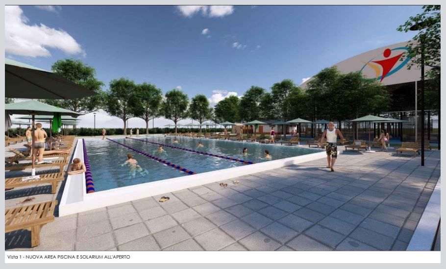 All’attuale struttura che conta campo da basket, sale congressi, piste per il pattinaggio, campi da tennis e palestre si andranno ad aggiungere una piscina all’aperto divisa in due zone (una per adulti di 25 metri per 12,50 e una per bambini di 7 metri per 4 e con altezza massima di 60 cm), 3 campi da Padel al coperto, riqualificati i 2 campi da tennis già presenti, oltra a un nuovo blocco spogliatoi e strutture per biglietteria, accoglienza e food esterne.