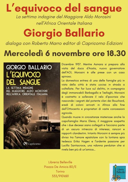 La scorsa settimana è uscito il settimo romanzo della serie del Maggiore Aldo Morosini, dal titolo 'L'equivoco del sangue'. L'ultima fatica letteraria di Giorgio Ballario, autore tra i più noti ed apprezzati del genere noir, può essere acquistata o ordinata in libreria, ma anche su Amazon e su tutte le altre piattaforme web, anche in versione ebook.