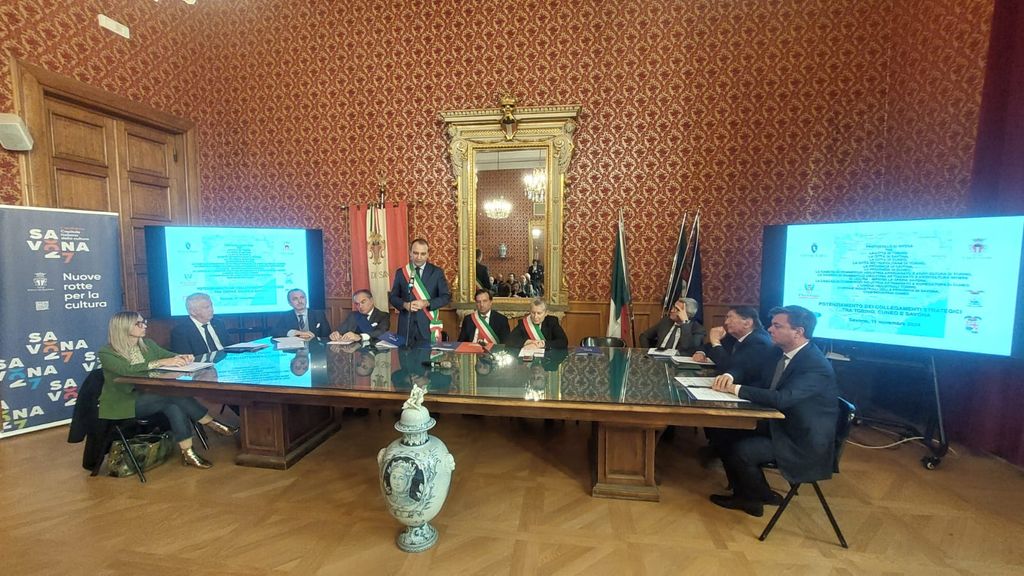 È stato firmato questa mattina nella Sala Rossa del Comune di Savona il Protocollo di Intesa per il potenziamento dei collegamenti strategici tra territori, un patto di collaborazione finalizzato a sollecitare Regioni e Governo a intervenire per affrontare con urgenza gli annosi problemi infrastrutturali che ostacolano i collegamenti ferroviari, autostradali e stradali tra Piemonte e Liguria, dal sindaco di Savona, Marco Russo, il sindaco della Città metropolitana e della città di Torino, Stefano Lo Russo, la sindaca di Cuneo, Patrizia Manassero, il presidente della Provincia di Savona, Pierangelo Olivieri e il presidente della Provincia di Cuneo, Luca Robaldo.