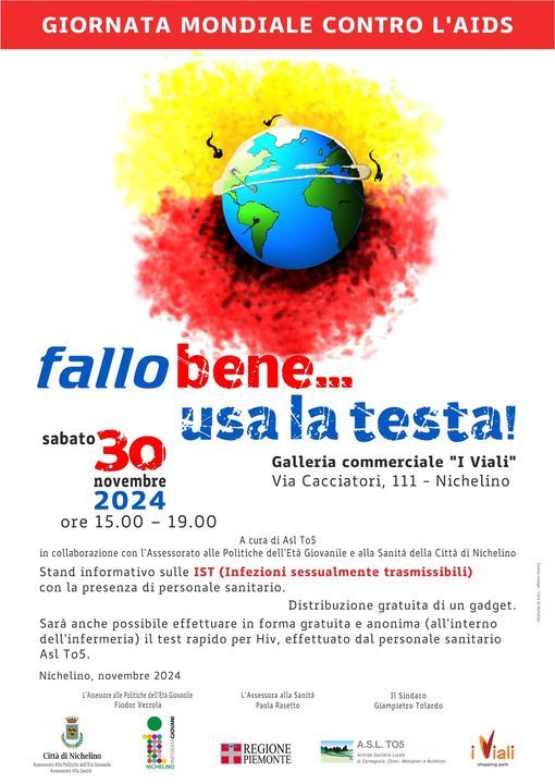 Si avvicina la Giornata Mondiale contro l'Aids e il Comune di Nichelino si schiera in prima fila per favorire la prevenzione, con incontri e appuntamenti. Sabato 30 novembre, dalle ore 15 alle 19, presso il centro commerciale I Viali, sarà organizzato un evento dedicato ai giovani.