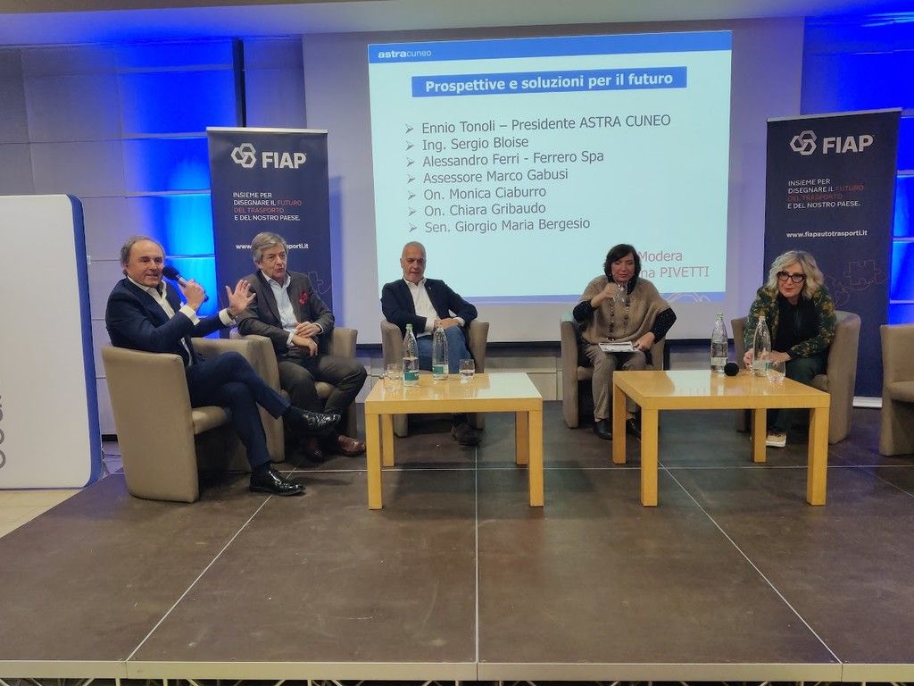 La giornalista economica, esperta di trasporti e logistica Morena Pivetti ha successivamente condotto un’interessante tavola rotonda, alla quale hanno partecipato il Presidente ASTRA CUNEO Ennio Tonoli, il Dott. Alessandro Ferri Presidente dell’Osservatorio TCR e Transport Manager Ferrero Industriale, e i parlamentari cuneesi Giorgio Bergesio, Monica Ciaburro e da remoto Chiara Gribaudo.
