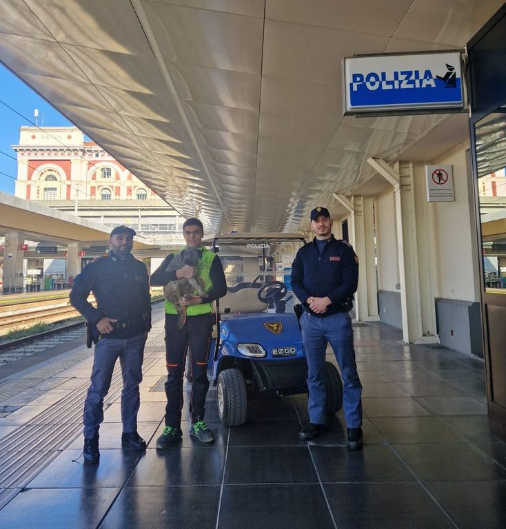 Un cane smarrito rischia di finire sui binari del treno a Porta Nuova: la polizia interviene e lo salva