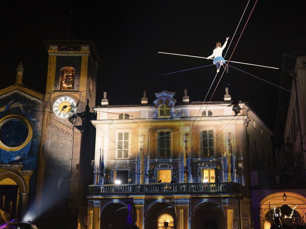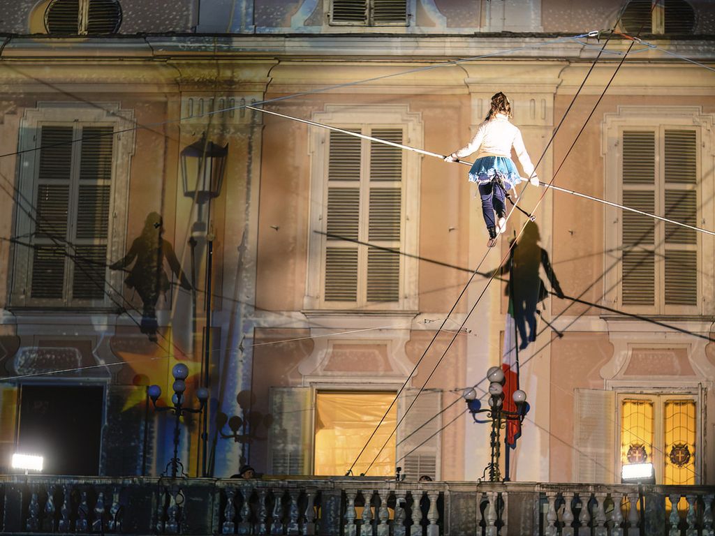 Sia oggi che domani, sabato 30 novembre, sempre alle ore 18, con Mooncalieri dreaming – Acrobazie aeree e funamboliche visioni, emozioni ad alta quota tra le case del centro storico. Lo spettacolo, accessibile a tutti gratuitamente, si suddivide in tre quadri: il primo quadro vede protagonista la funambola Giulia Cammarota, diplomata presso l’Accademia Cirko Vertigo e unica funambola in Italia a camminare a grandi altezze. Giulia ha saputo attraversare piazza Vittorio Emanuele in equilibrio sopra a un sottile cavo d’acciaio lungo quasi 100 metri. Un momento affascinante e delicato, che ha tenuto il pubblico con il fiato sospeso.
