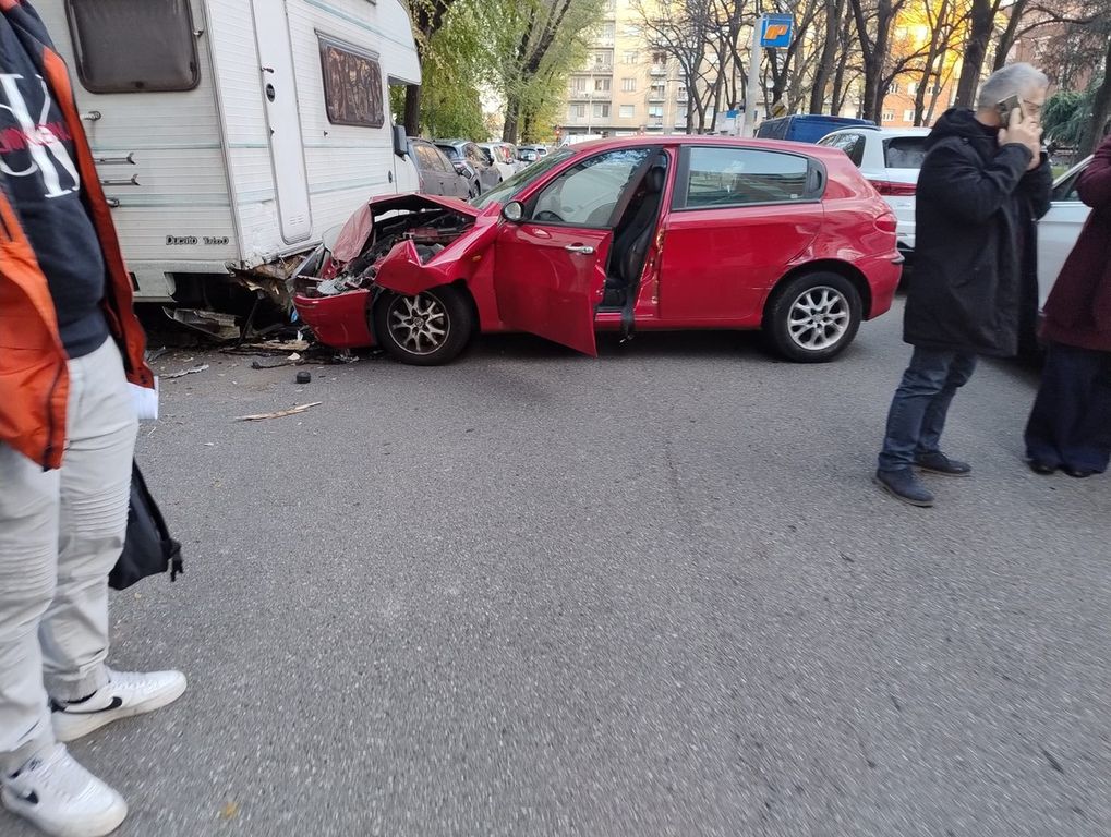 Auto va a schiantarsi contro un camper parcheggiato a bordo strada: momenti di paura