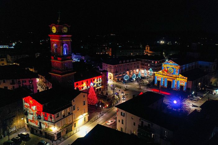 Infatti, qui i monumenti parlano: lo fa il Mascherone, fontana del 1622, che racconta la sua storia e dialoga con l’albero centenario Frondo, nel parco comunale. Altri comunicano grazie alle immagini realizzate con il videomapping: la Torre dell’Orologio, gli edifici di piazza San Lorenzo, la chiesa parrocchiale, le chiese delle borgate: musica e cascate di colori per immergersi in un vero e proprio villaggio magico, capace di incantare i cuori. Punto speciale per i bambini con attività interattive in piazza Mautino.